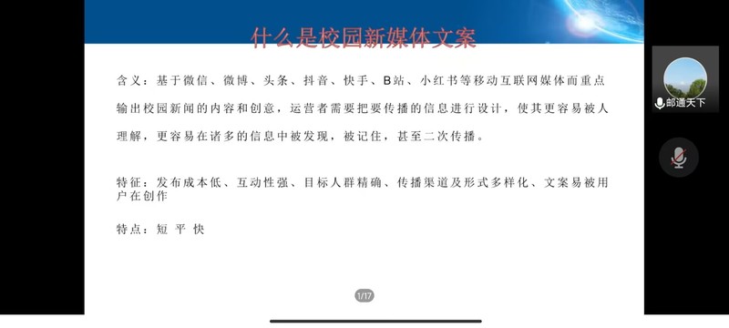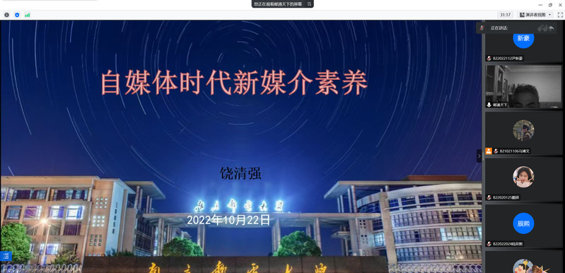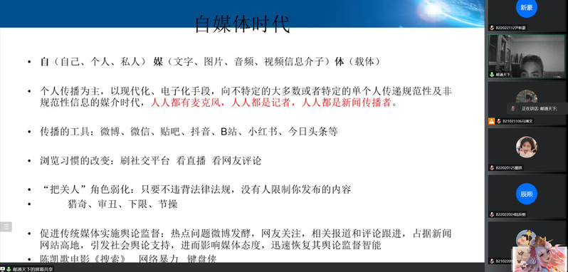 为加强同学们对自媒体时代的了解,明晰自媒体时代给我们带来的机遇与危机。11月14日晚,由线上百家乐 承办的菁英人才学校第140期第二次授课顺利开展,本次授课的主题是“自媒体与意识形态,及新闻稿的撰写”,由宣传部、信息中心新媒体中心主任饶清强老师担任主讲人,菁英人才学校全体同学于线上参会。