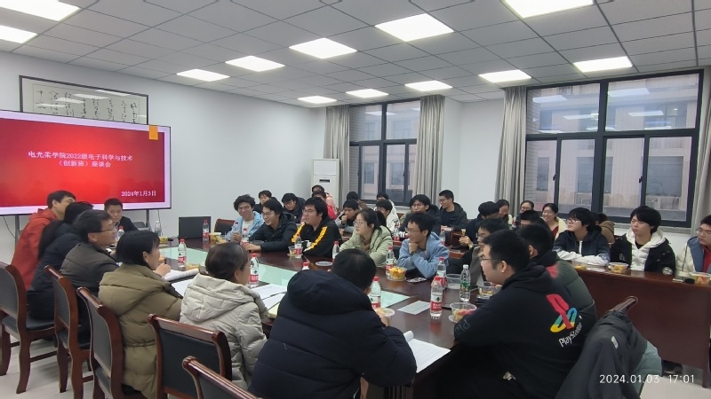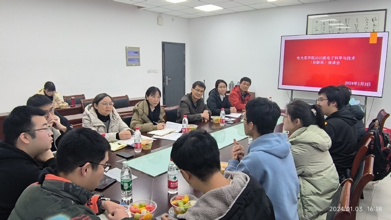 1月3日,线上百家乐-百家乐老虎机 2022级电子科学与技术(创新班)B220200班“师生同心、共话成长”座谈会于电光A楼328召开。本次座谈会为校、院领导与联系班级面对面座谈会,出席本次座谈会的校院级领导有赵强副校长,电光柔学院党委书记黄丽亚,工程训练中心主任、电光柔学院副院长程勇,电光柔学院党委副书记、副院长徐磊,电光柔学院副院长刘蕾蕾,电光柔学院副院长刘宁,此外,B220200班班主任李炳祥、辅导员强增寿、B220200班全体同学参加了会议。